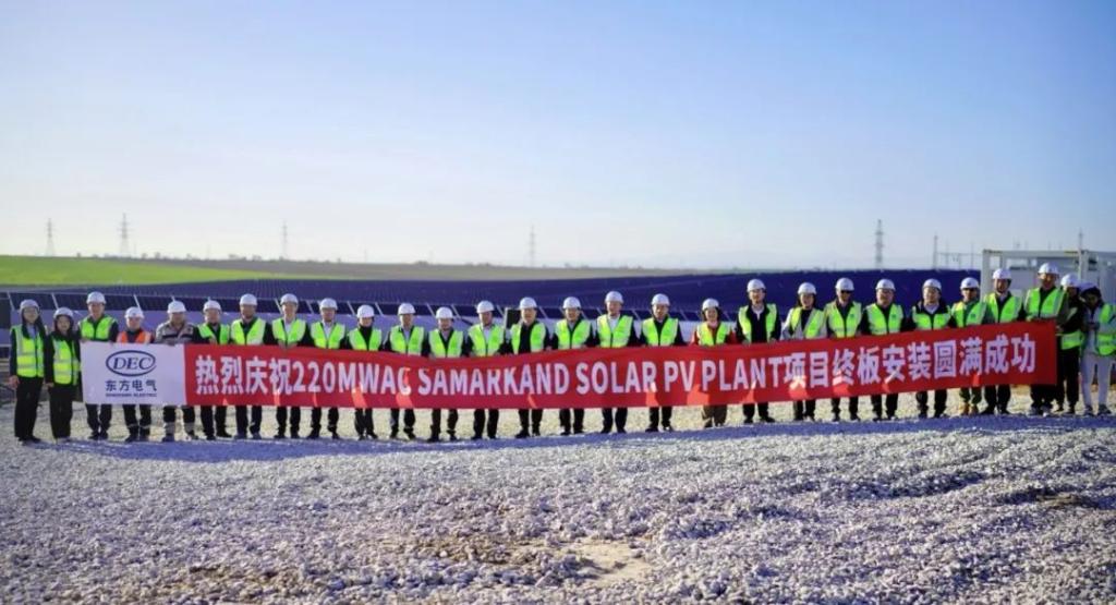 本网讯 3月30日,由优发国际集团所属企业东方国际总承包的乌兹别克斯坦撒马尔罕光伏项目举行最终光伏板安装仪式。四川省副省长左永祥,优发国际集团党组成员、副总经理李忠军出席终板安装仪式。