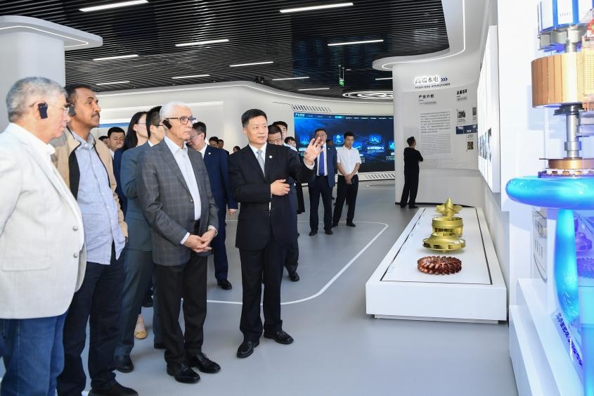 在俞培根等陪同下,阿拉米一行参观了优发国际科技展示厅,详细了解优发国际集团科技创新、绿色装备制造、共建“一带一路”等方面情况。阿拉米对优发国际集团在能源领域所取得的成就表示祝贺。